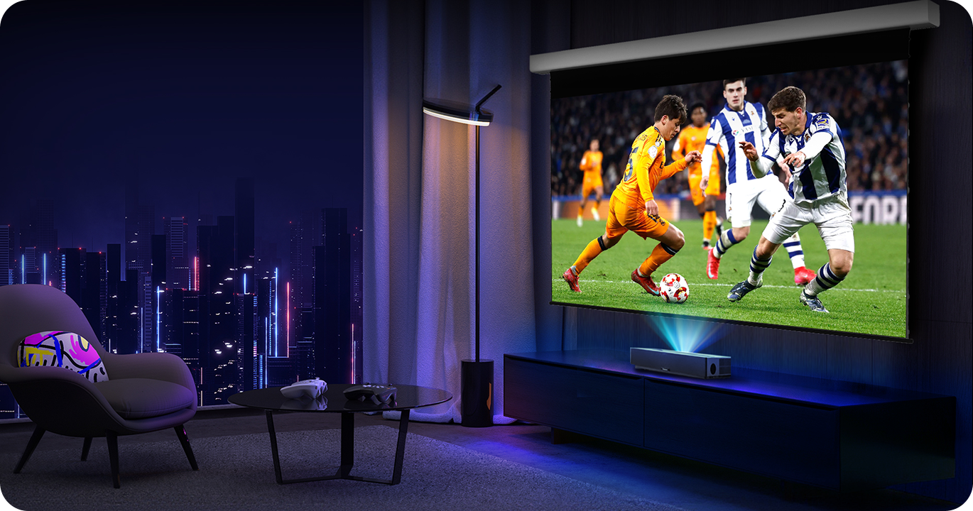 The picture quality is undeniable: your living room transforms into a true cinema at any time of the day. Blacks maintain their depth, colors retain their intensity, and the image preserves all its richness, from dark areas to the brightest ones. This quality remains consistent both in broad daylight and in the evening. Under these conditions, your ultra-short throw projector fully realizes its potential.