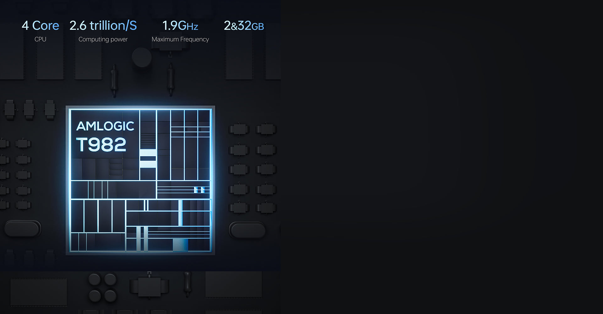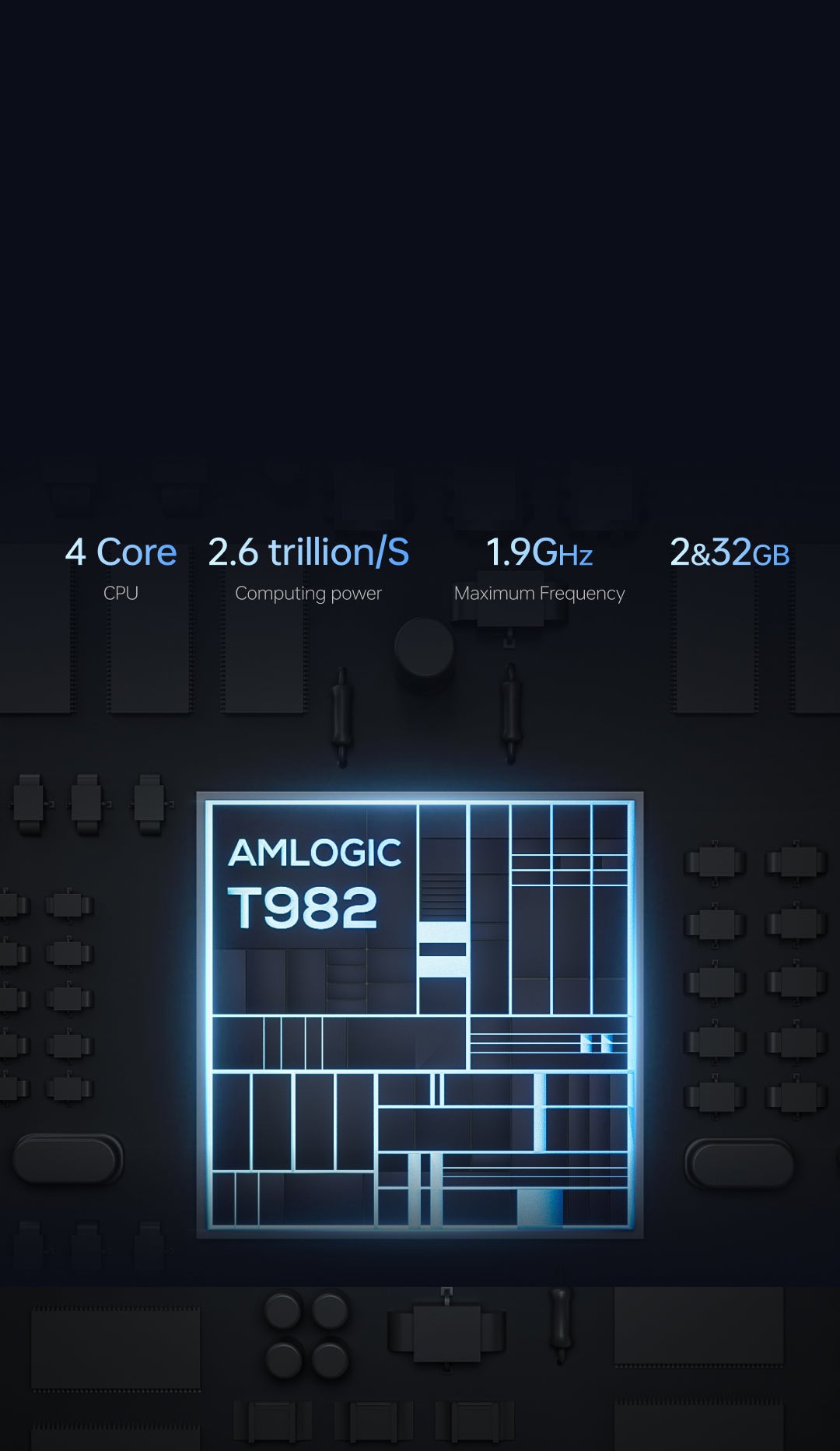 * Enthält 2 GB RAM, 32 GB ROM, Amlogic T982 CPU, WI-FI 6, HDMI 2.1 und USB 3.0.