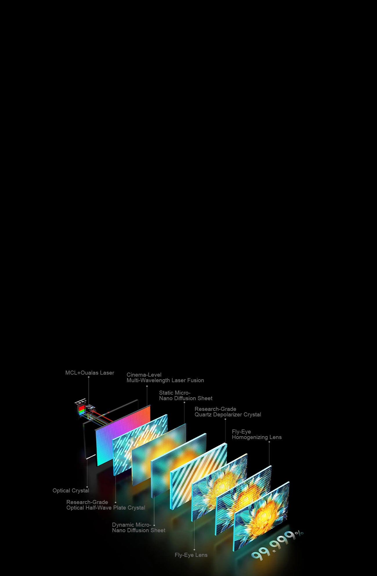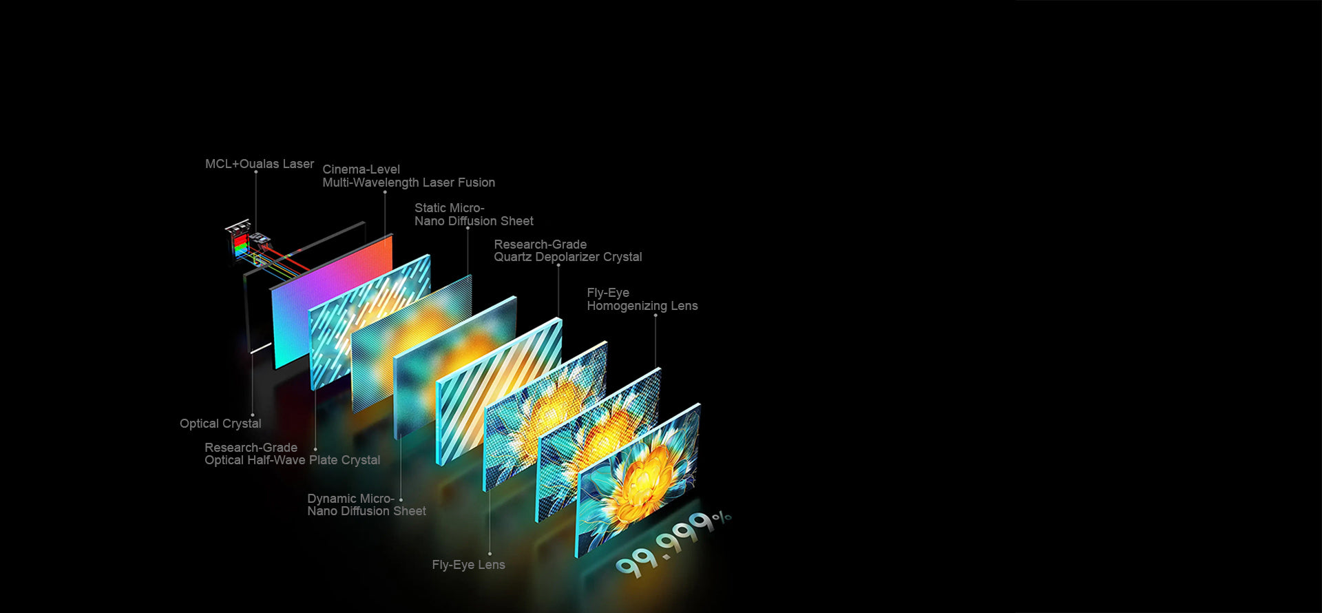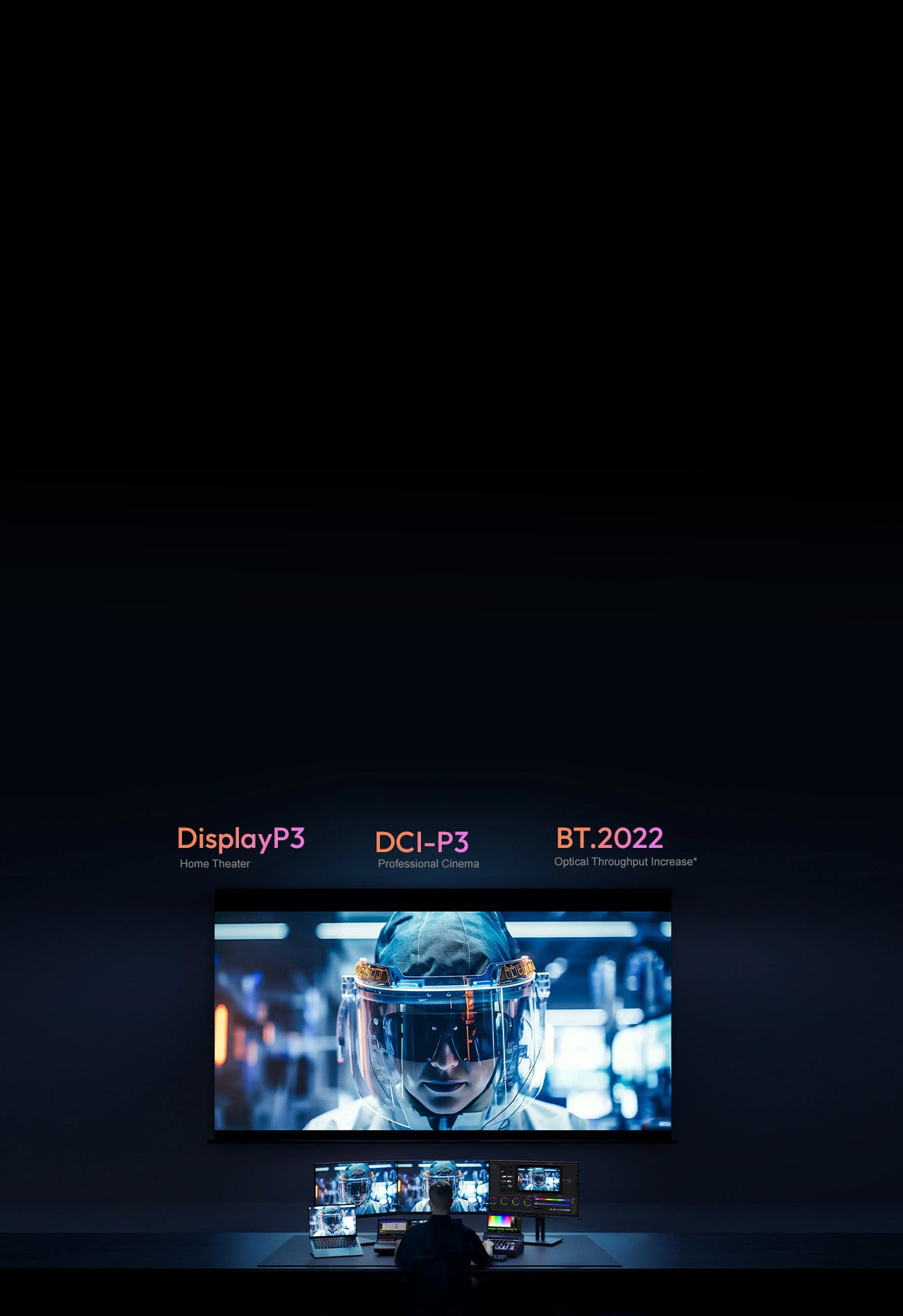 The world’s first three-stage variable aperture (f/2.2–f/6) boosts contrast by 150%, while the 0.98–1.6:1 optical zoom delivers a flexible 100–300” projection without image loss. A master-crafted cinema lens enhances sharpness by 40%, producing edge-to-edge precision even at large screen sizes.