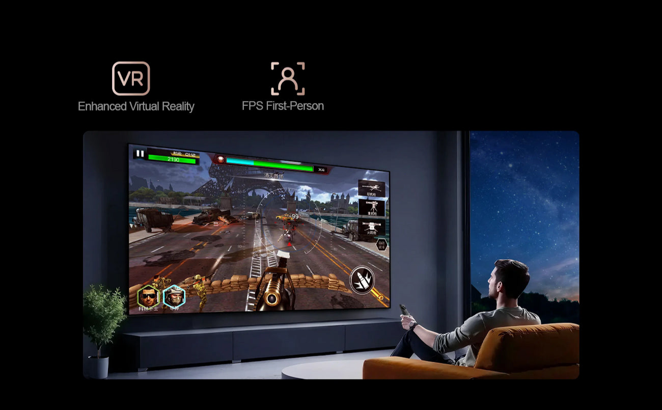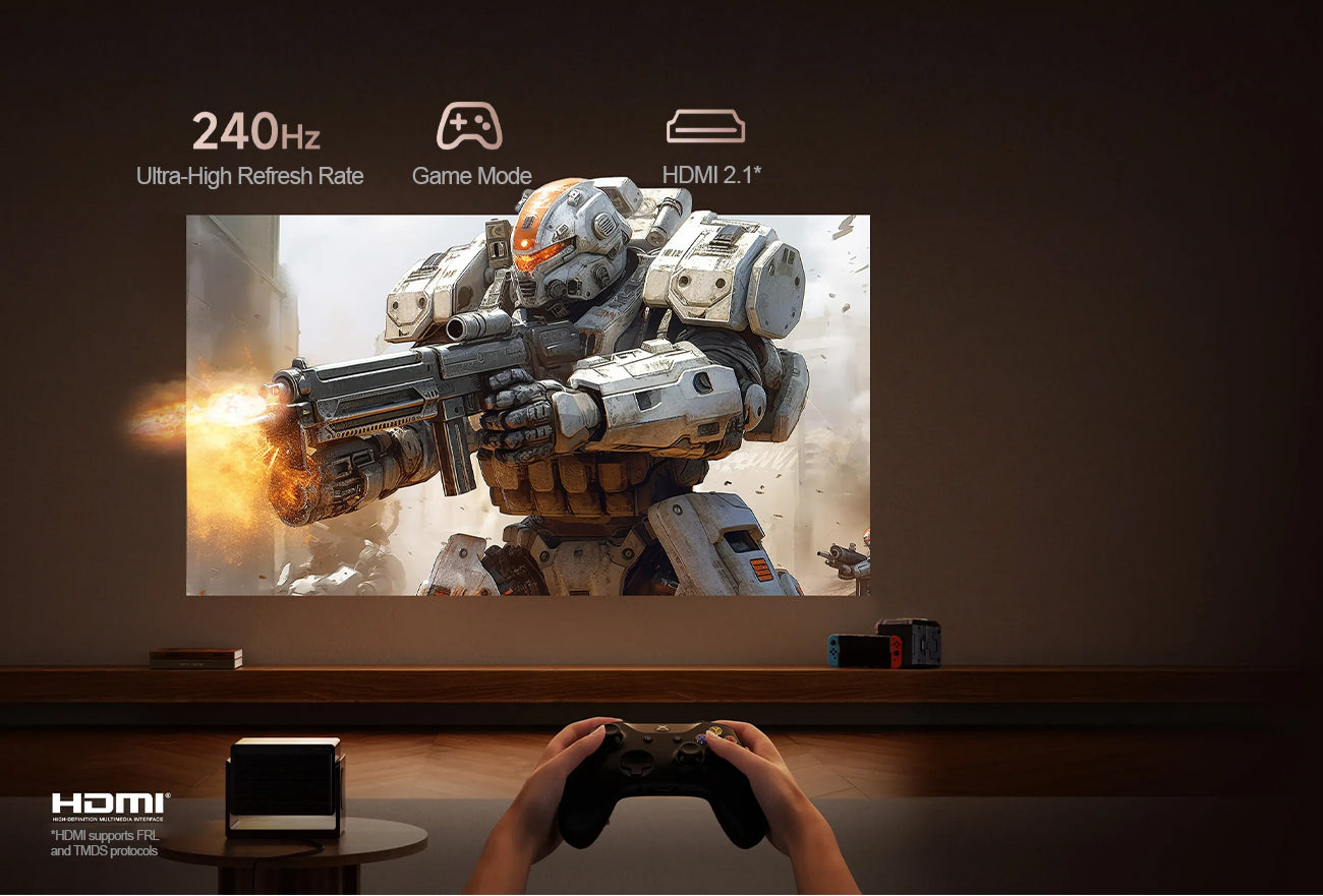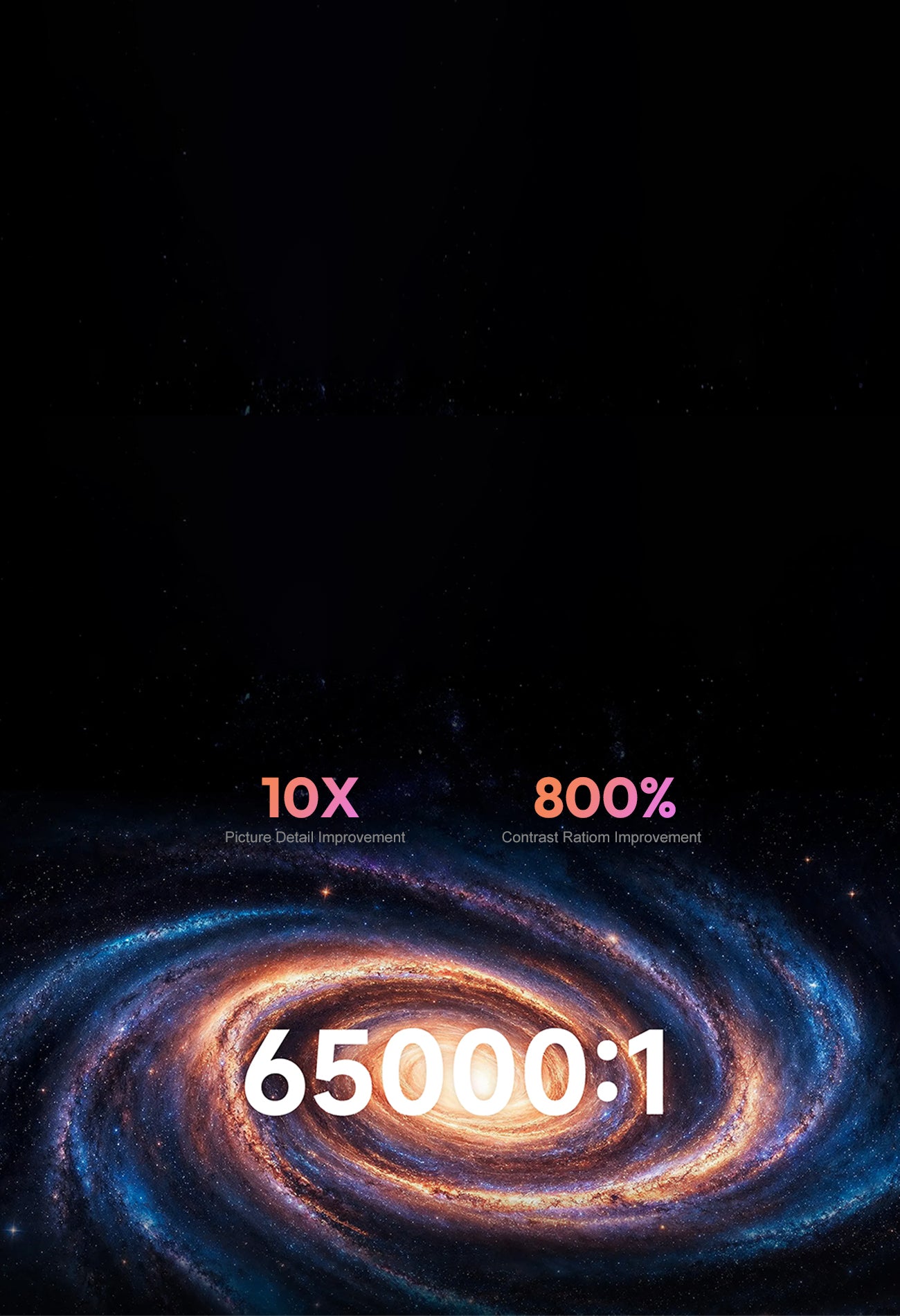 Enjoy breathtaking detail with true 4K UHD resolution powered by a 0.47” DMD chip, enhanced by ΔE<0.8 color accuracy. Support for Dolby Vision, HDR10+, HLG, and HDR Vivid ensures deep blacks, dazzling highlights, and a natural cinematic feel. Native 8000:1 contrast ratio and up to 150,000:1 dynamic contrast provide unparalleled depth and realism.