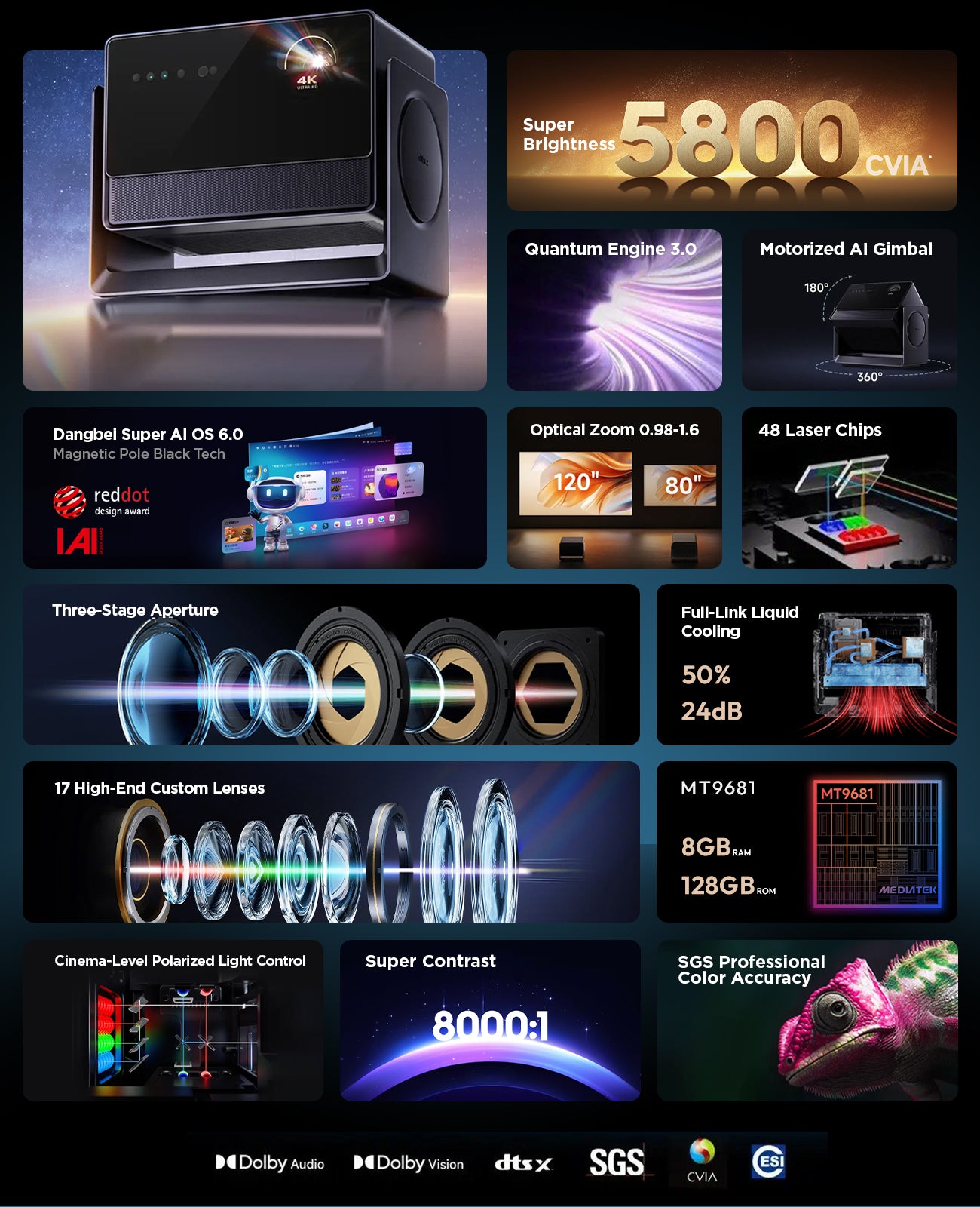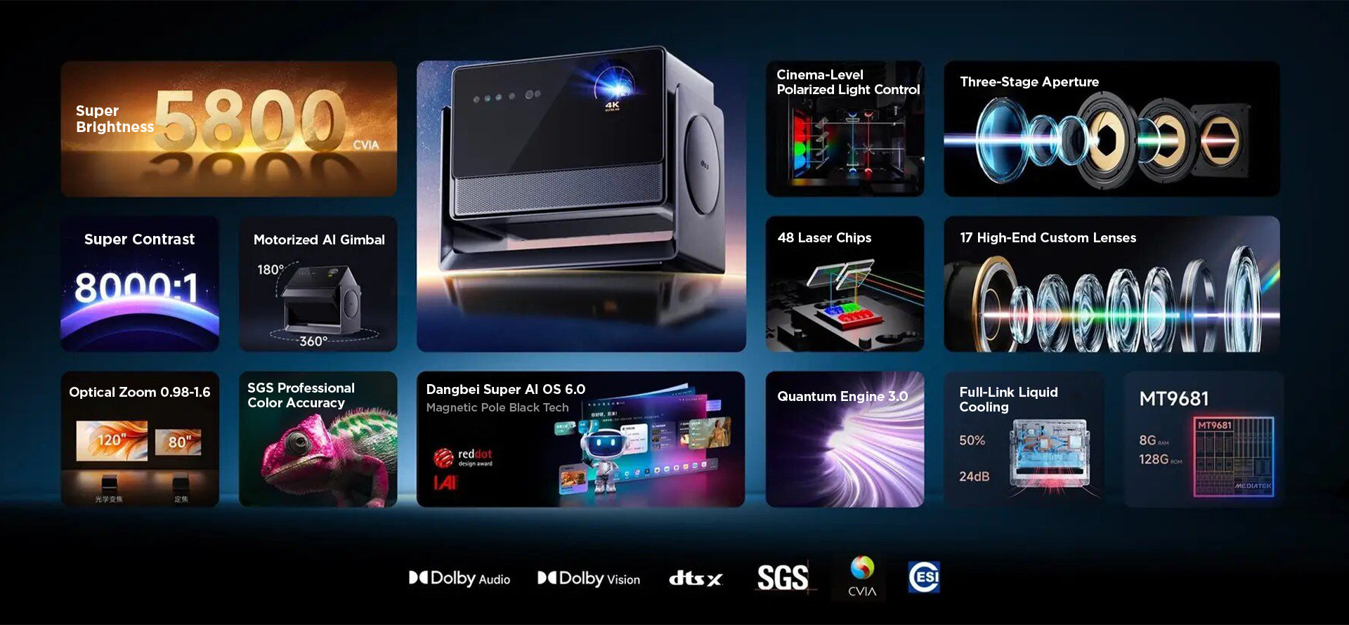 Dangbei S7 Ultra Max Triple 4K Laser Projector 5800 CVIA Lm Dolby Vision ELRS Engine Full Auto Smart Projector