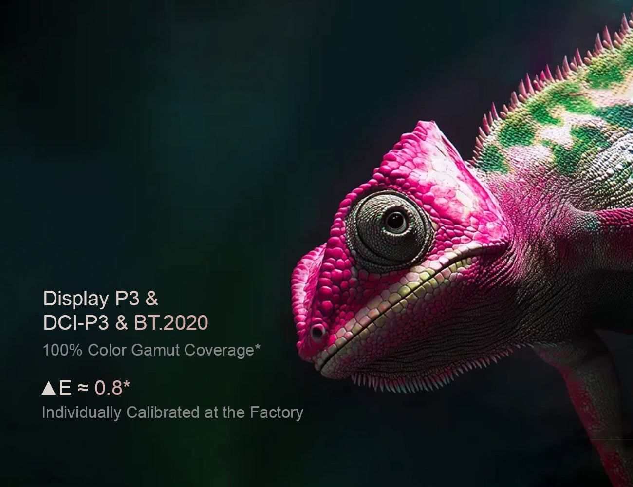 | Color Coverage | 100% Display P3 & DCI-P3, 110% BT.2020 |