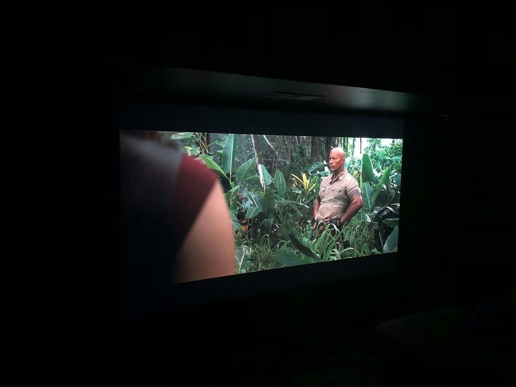 Note that in the video, one side of the 132-inch screen appears lighter in color due to its size and its proximity to the light source (the window).
