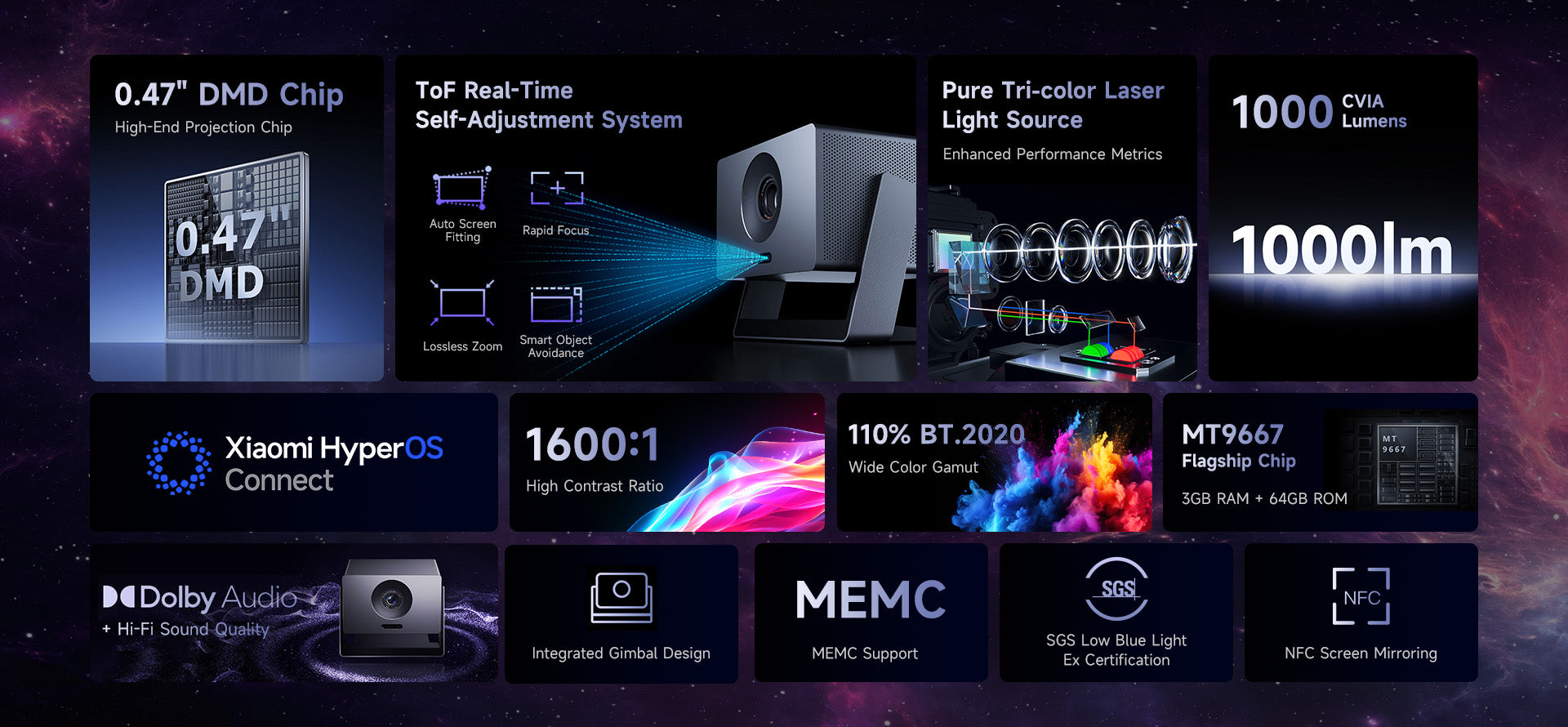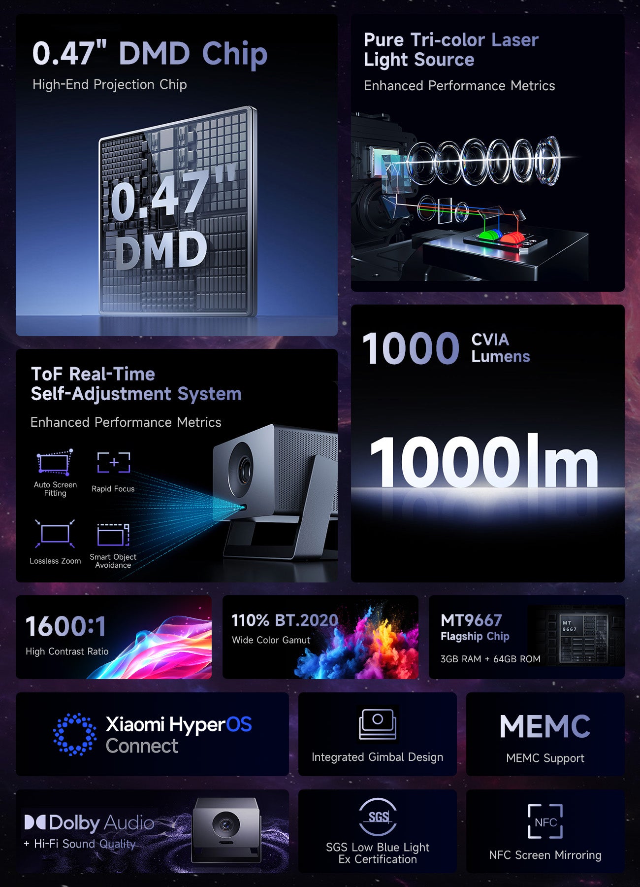 Laser Xiaomi Vidéoprojecteur 3 avec résolution 4K 1000 CVIA Lumens & Dolby Audio