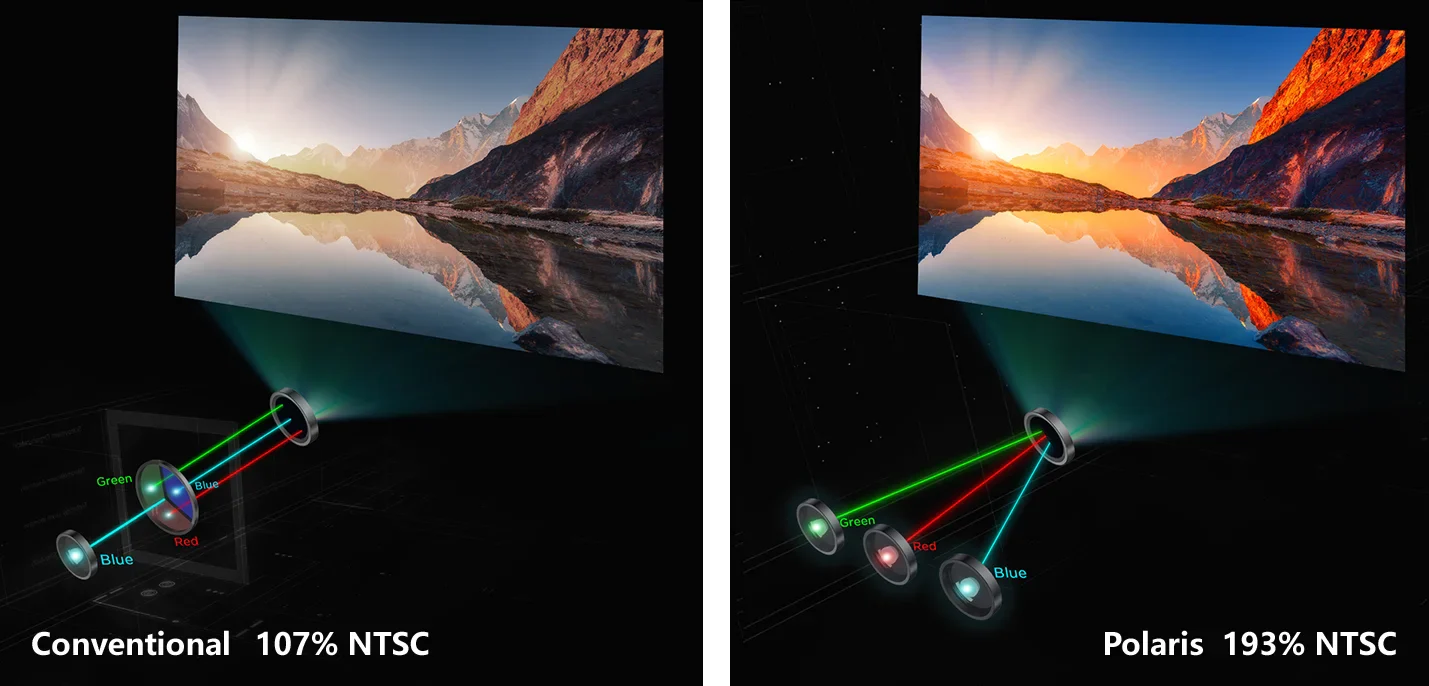 Avec un incroyable 8,3 millions de pixels (3840 * 2160p) et équipé d'un haut-Les objectifs Ricoh End, le Polaris 4K Laser TV offre une image plus pêche, des couleurs plus réalistes et de plus grands détails en utilisant quatre fois plus de pixels que HD standard (1920 * 1080p). Vous vous demanderez comment vous avez regardé des films avant les Polaris.