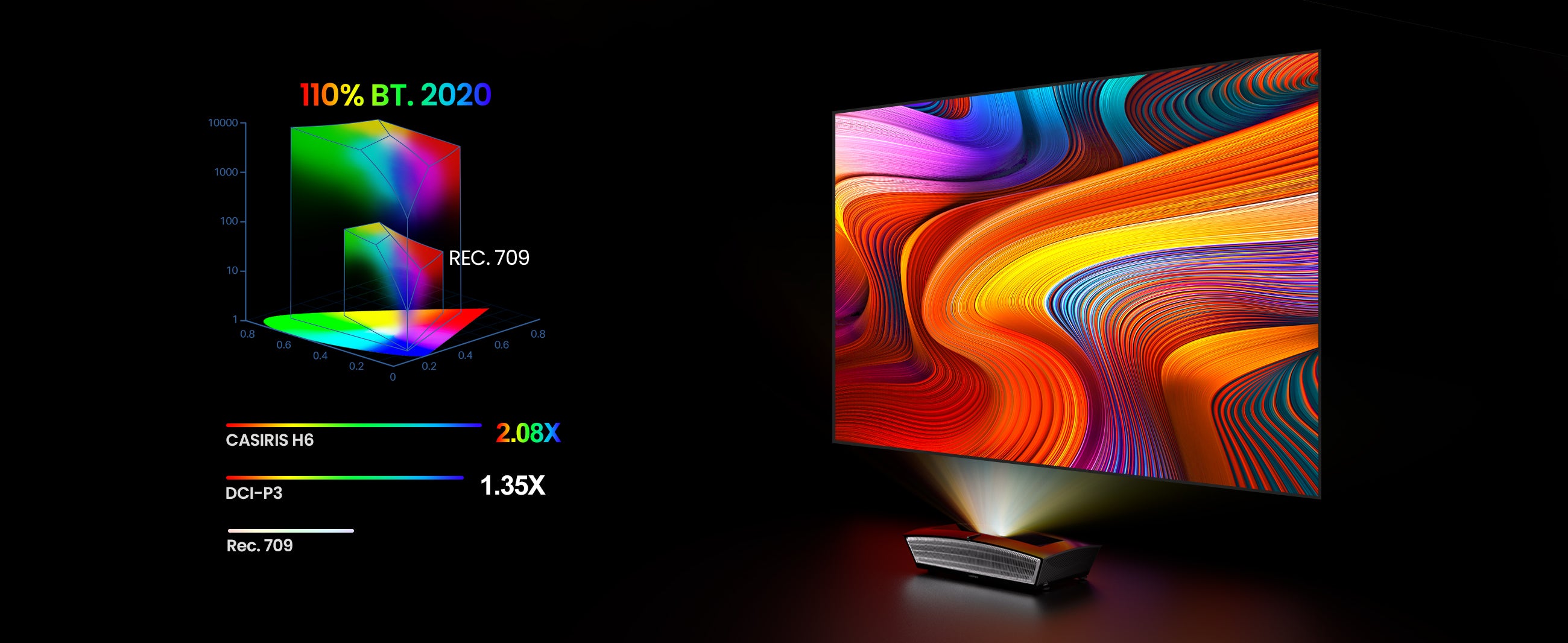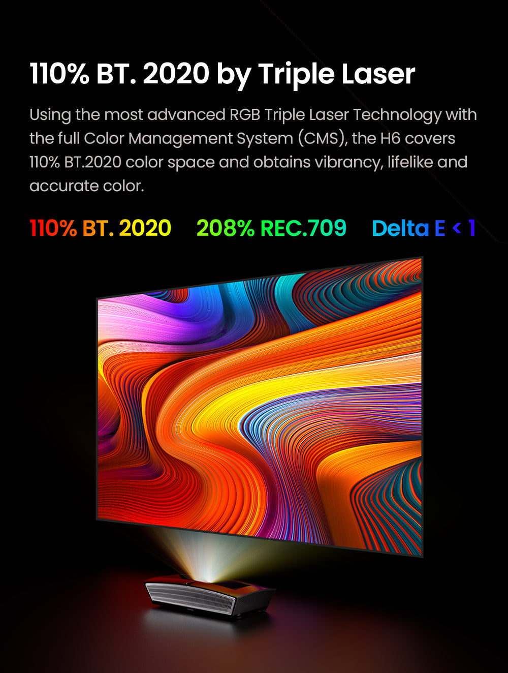 - 【Effets visuels brillants】Englobant un vaste 110% de l'espace colorimétrique du BT.2020, dépassant la norme de gamme de couleurs Rec709 prévalente dans la projection laser monochrome, notre vidéoprojecteur dévoile un spectre plus large avec plus de 1,07 milliard de couleurs. Une saturation améliorée et une augmentation de la profondeur des couleurs culminent dans une crainte-inspirant, vrai-à-Expérience visuelle de la vie qui respire la vitalité dans votre contenu.