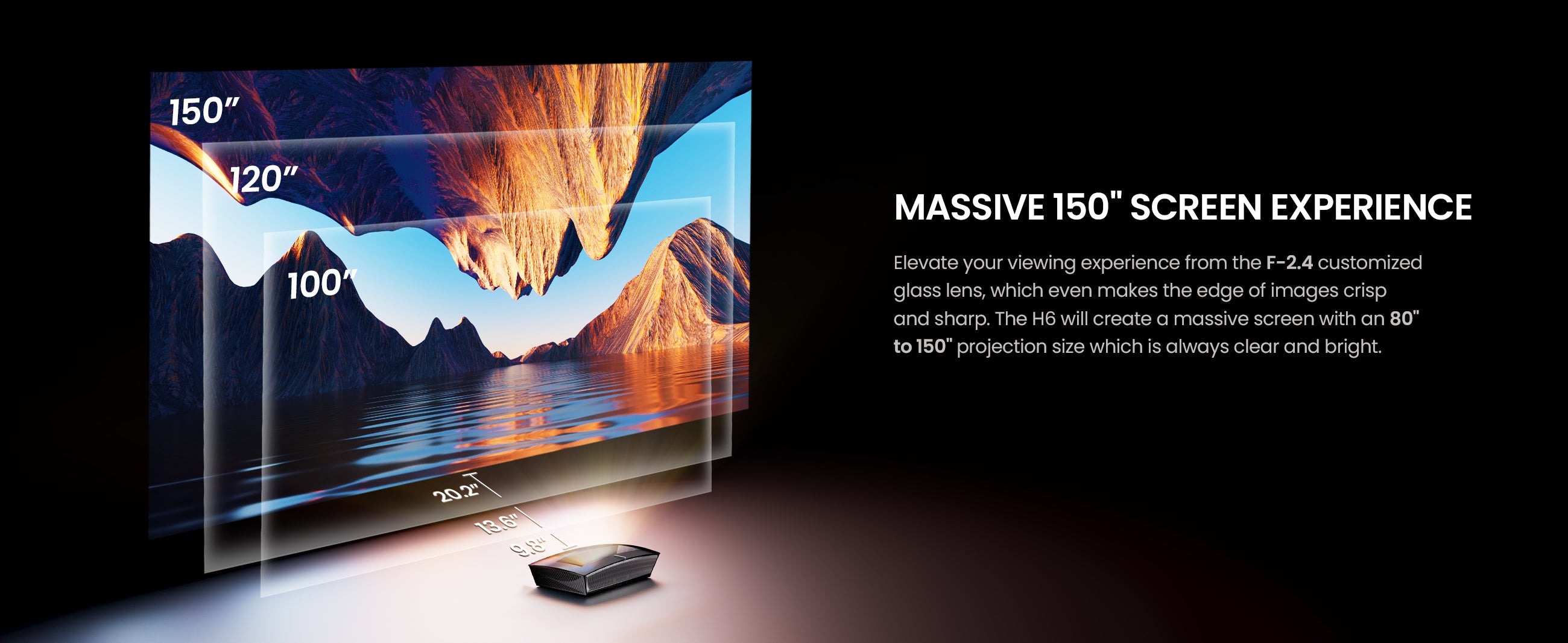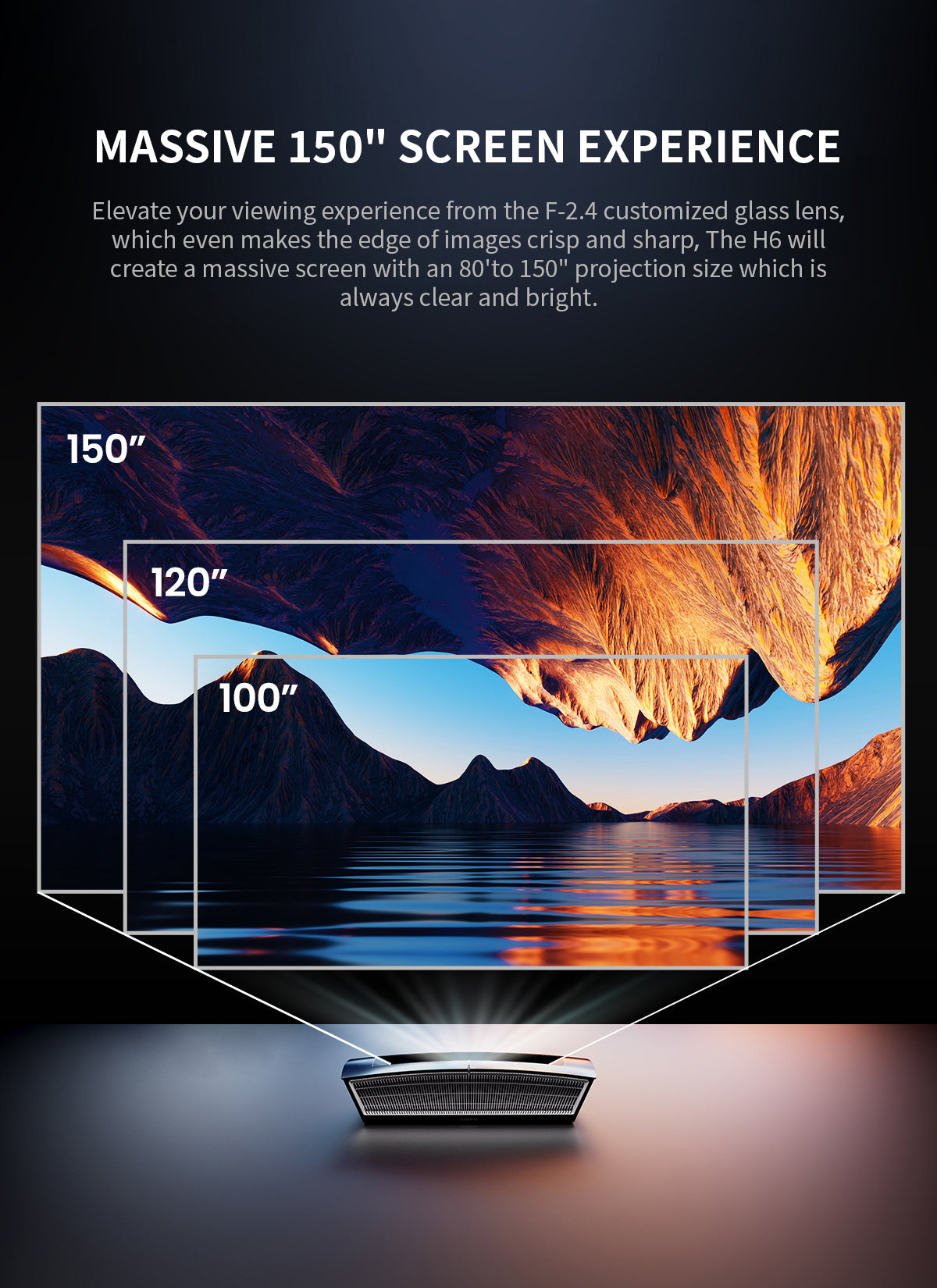 - 【Cinematic Large Écran】Le Casiris H6, avec un rapport de projection de 0,25: 1, peut atteindre un maximum écran Taille de 150 pouces, vous offrant une expérience de visualisation cinématographique.