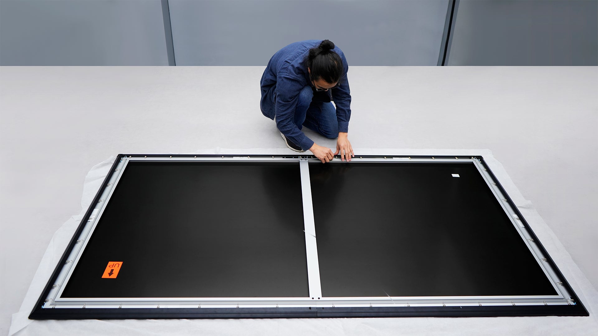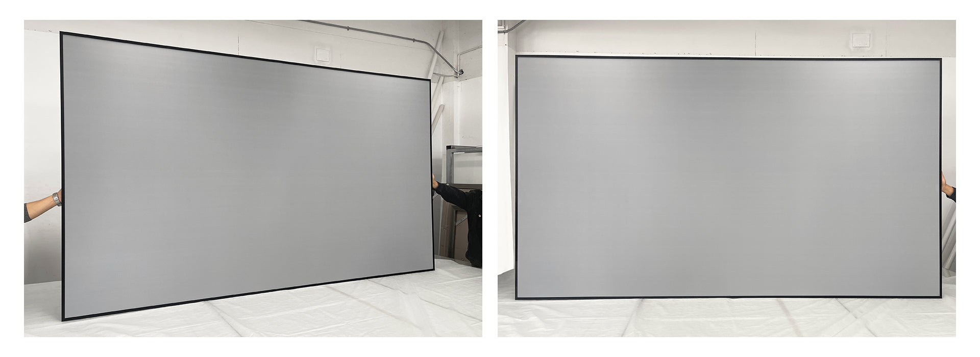 Avec un cadre minimaliste de seulement 1 cm, l’écran épouse parfaitement votre mur pour un rendu élégant et moderne, idéal pour tout salon ou salle de projection. Une fois allumé, il disparaît dans l’image — comme une fenêtre vers un autre monde.