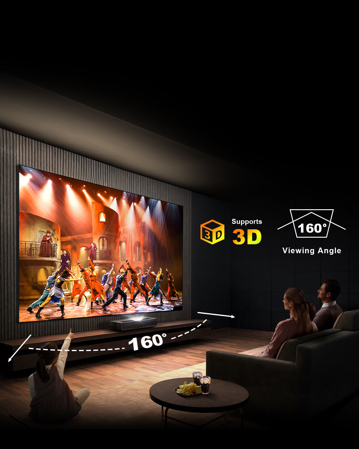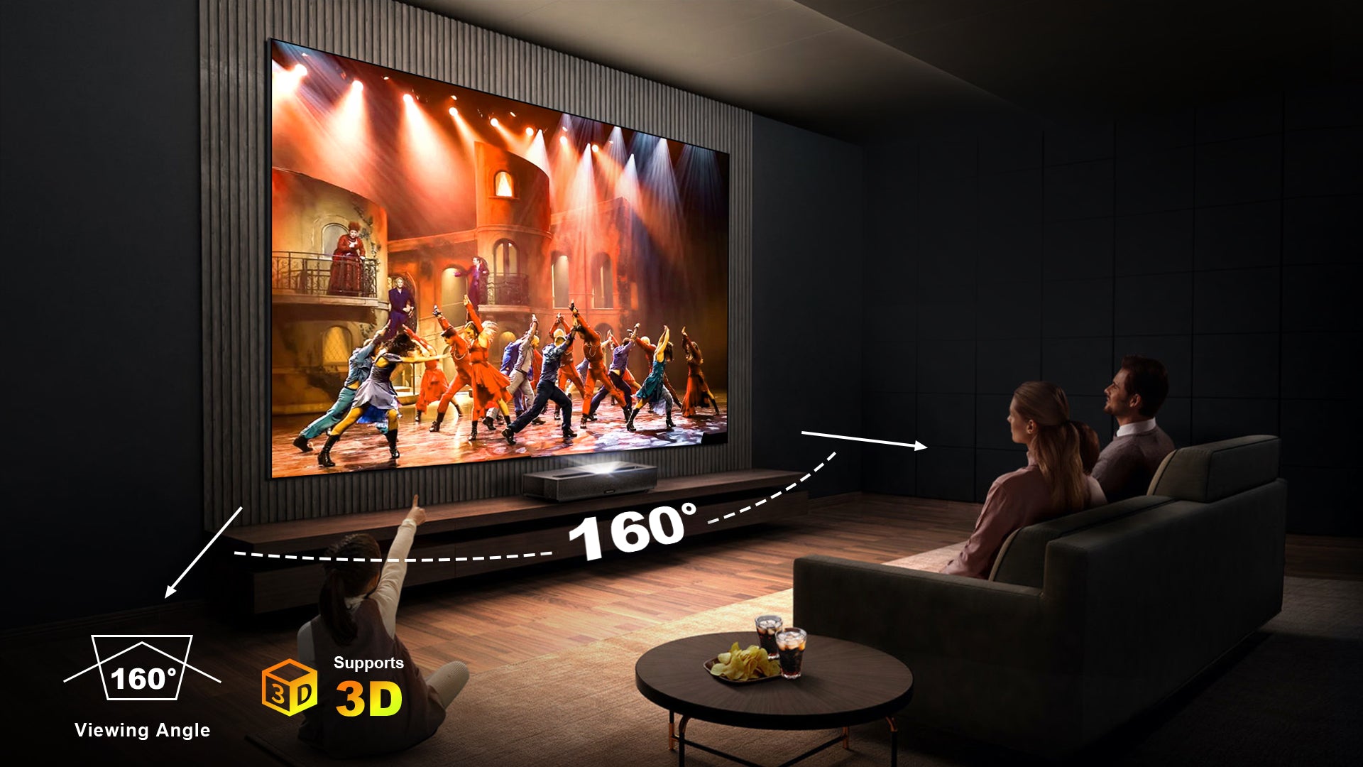 Peu importe votre position, vous bénéficiez d’une image claire et vibrante. L’angle de vision de 160° garantit une expérience visuelle homogène pour tous — idéal pour les soirées cinéma, les présentations ou les espaces partagés.