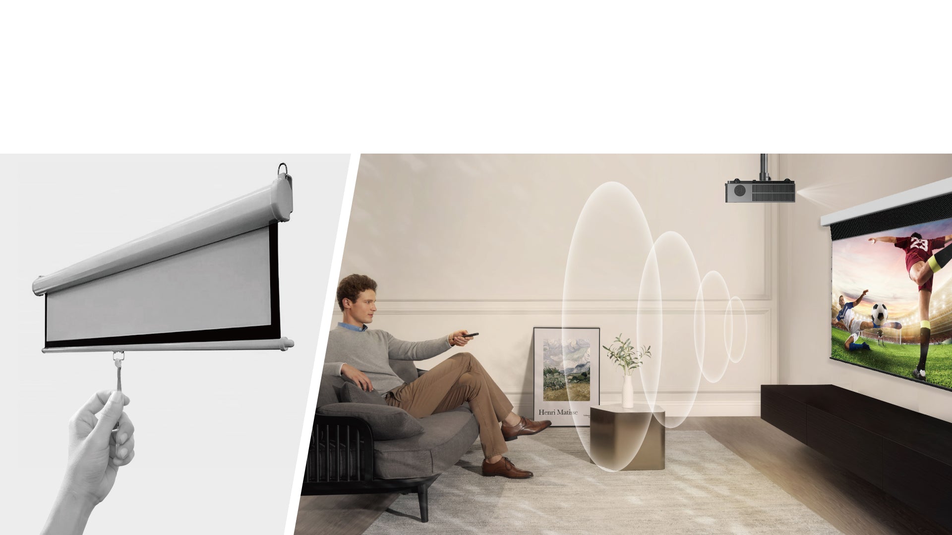 Disponible en 84–120 pouces – Grand écran sur mesure