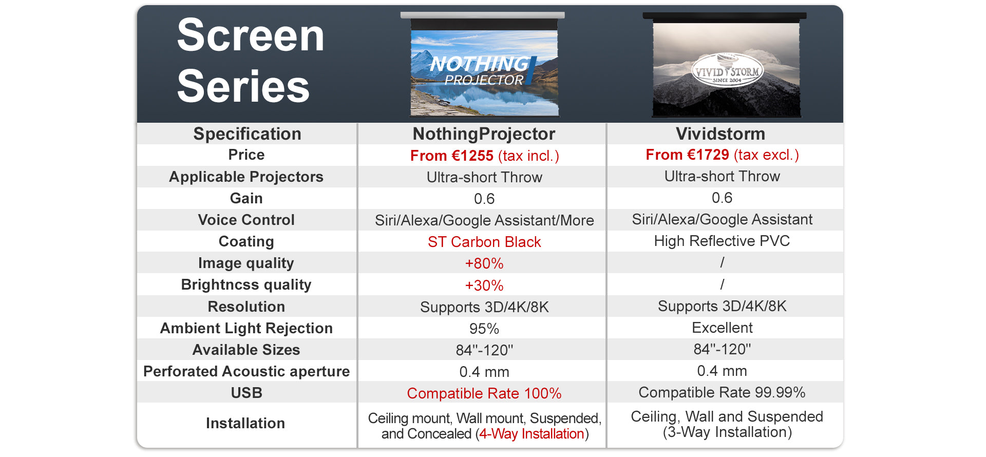 Nothing Projector Black Series ALR Écran Tensionné Motorisé Pour Vidéoprojecteur Ultra Courte Focale