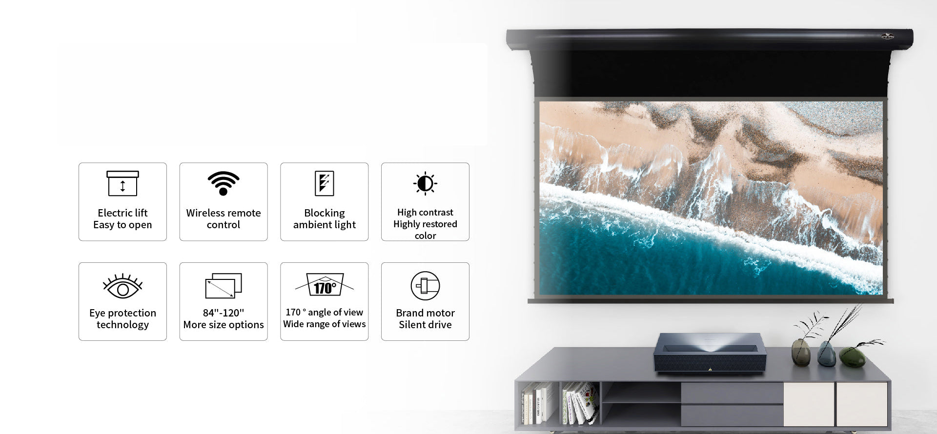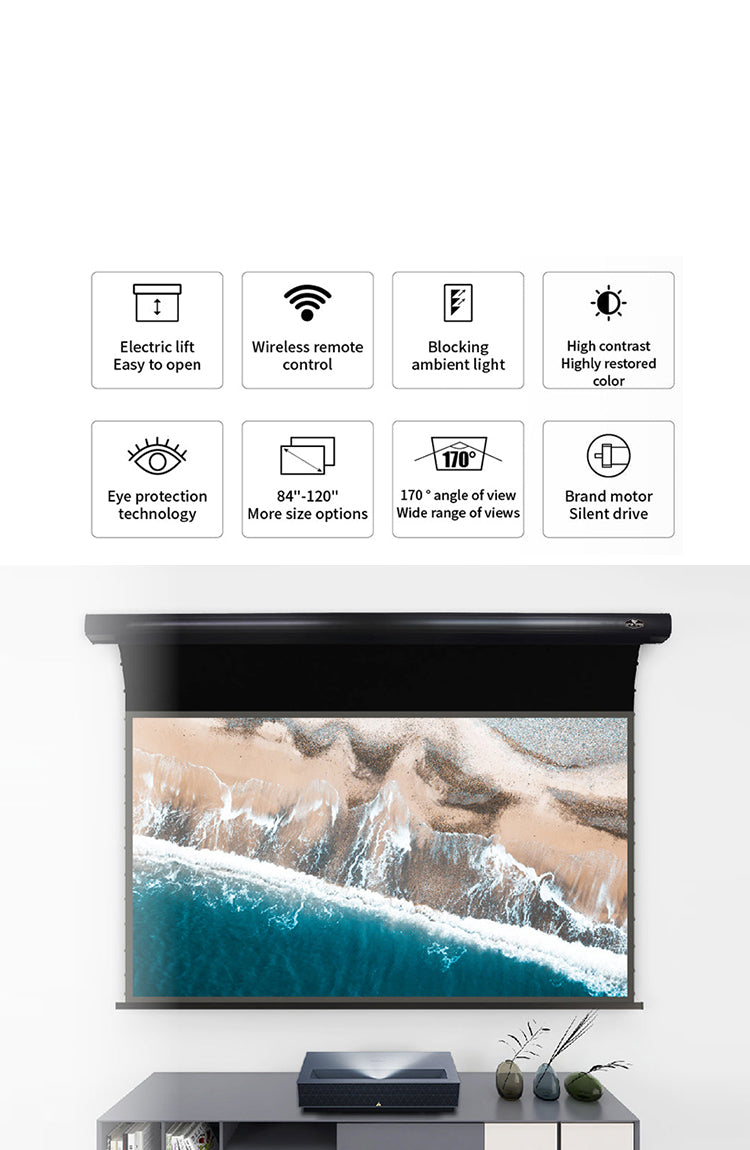 VividStorm Pro Slimline Tension motorisée Drop Down Down Ultra Courte Focale ALR Vidéoprojecteur Écran