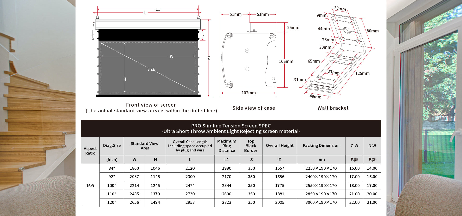 Écran Taille: 84 "-120pouce