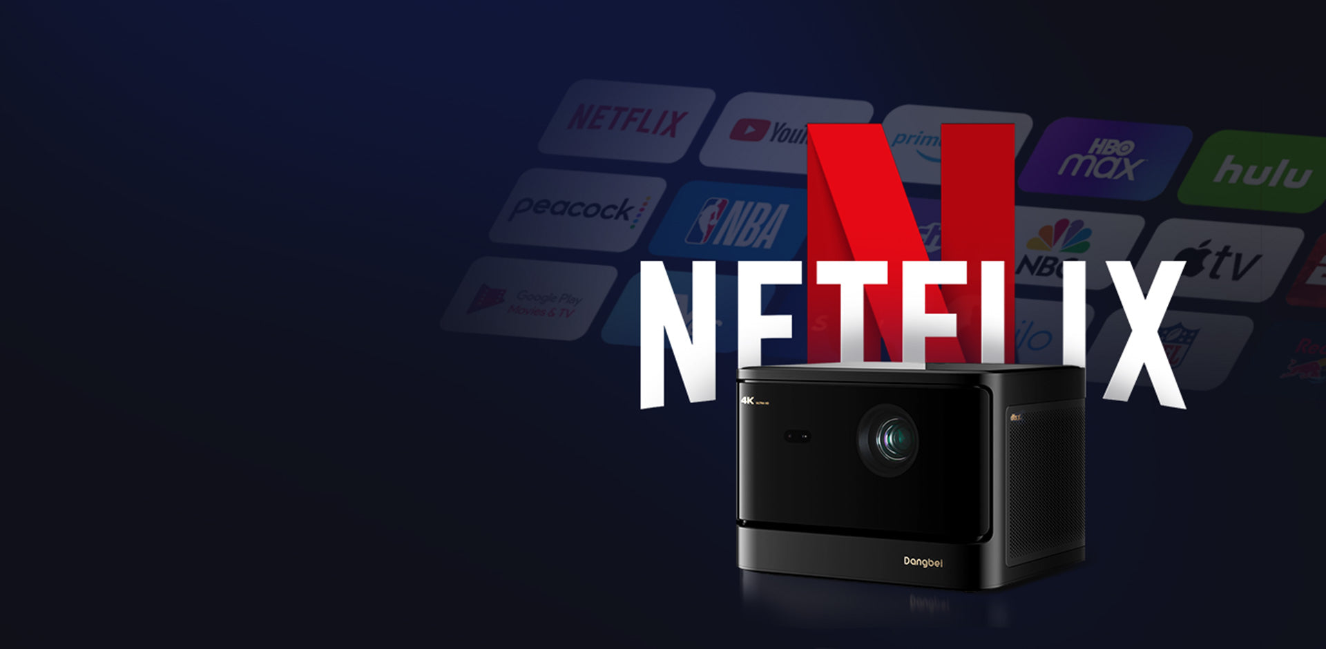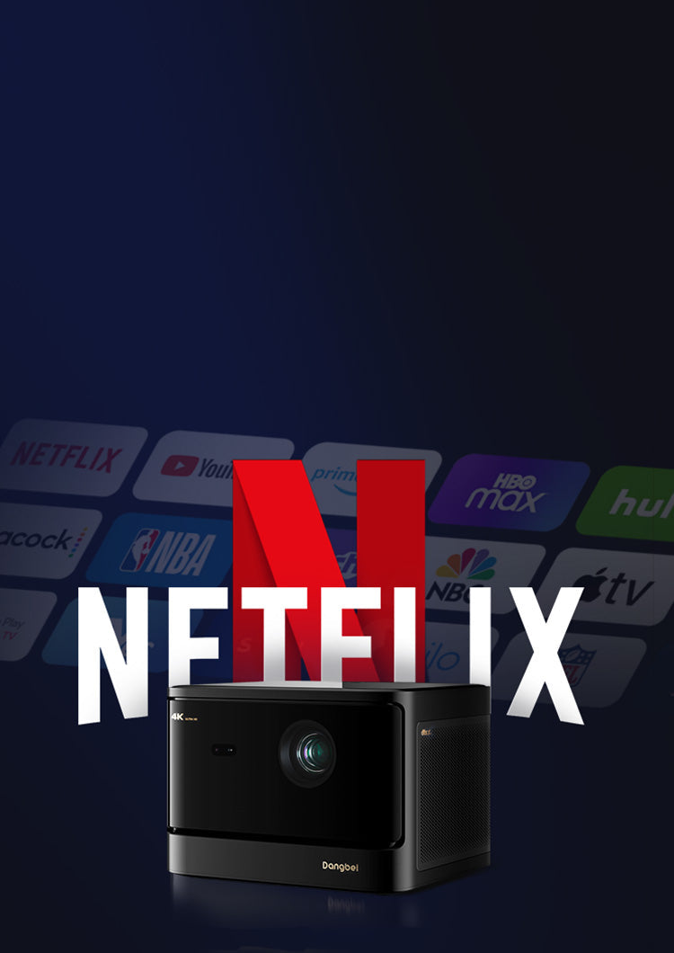 For many projectors that are not officially licensed by Netflix, users may often have problems watching Netflix without smoothness and stability, even if they can download the app by various methods. And, Netflix will regularly check and will ban the app on unlicensed products.The DBOX02 is officially licensed by Netflix, so users don't need to worry about the above problems, and it is designed with a Netflix hotkey on the remote control, so users can access Netflix at any time with a single press, which is super fast and convenient.