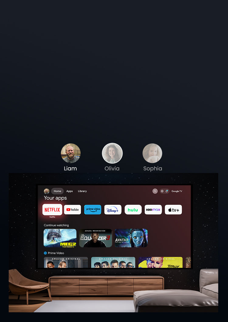 | Content | Netflix, YouTube, Prime Video, Hulu, Disney+... |