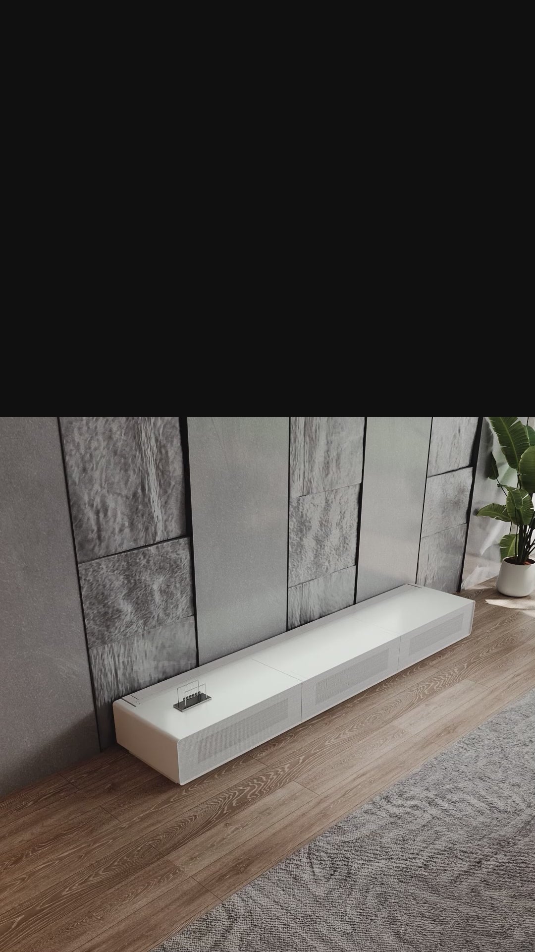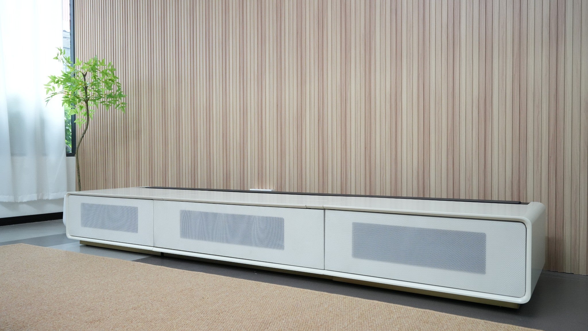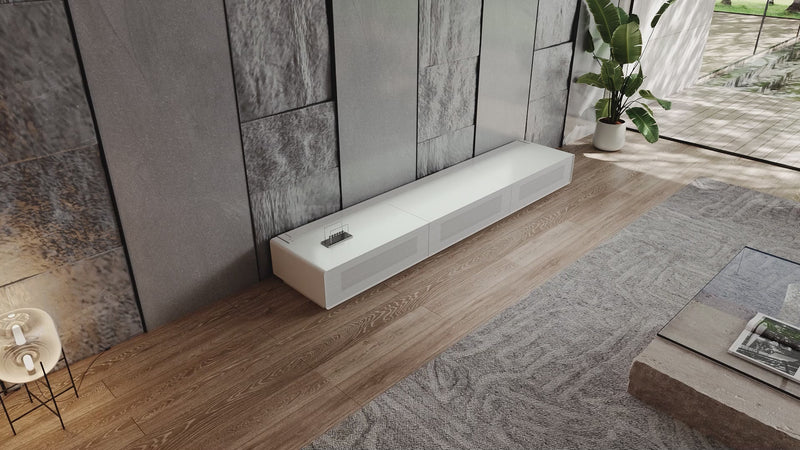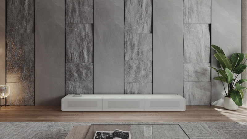 Shore Matte Cabinet 100–120 Inch – Matte Finish TV Console with Acoustically Transparent Panel Design & Dual Media Drawers