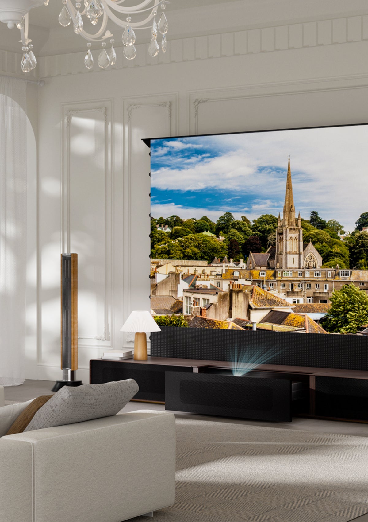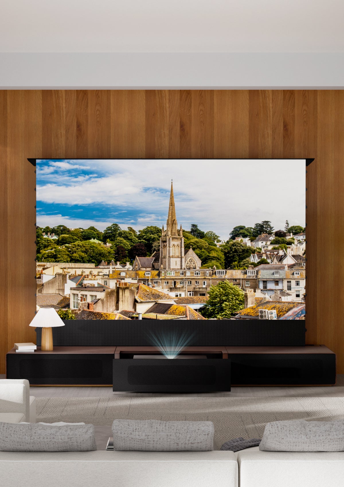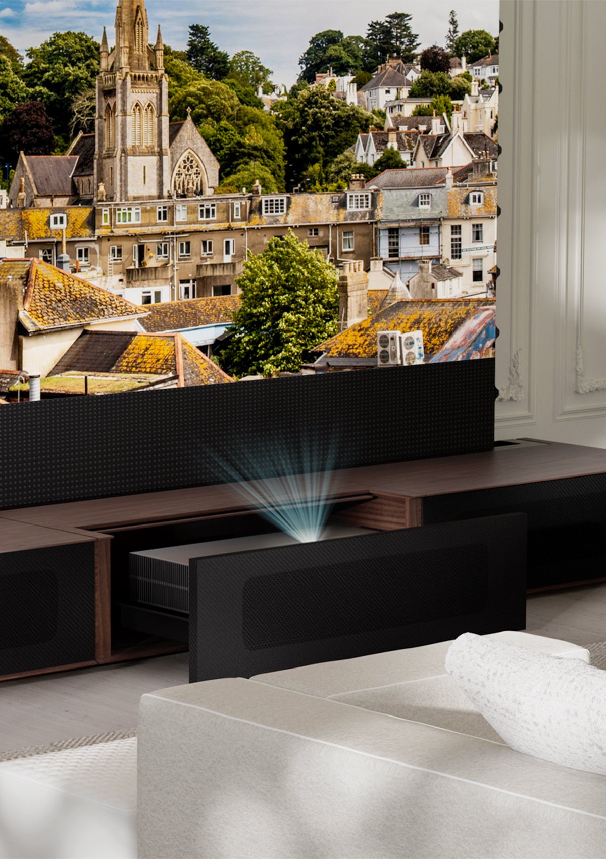 Le meuble Home Cinéma Shore incarne la solution intégrée ultime : il dissimule élégamment un projecteur UCF et un écran CLR motorisé géant (jusqu'à 3,05 m) dans un design sobre, offrant une image au contraste exceptionnel grâce à la technologie de réjection de lumière parasite, même en ambiance lumineuse. Son automatisation ingénieuse synchronise d'une simple touche l'ouverture du tiroir, l'allumage du projecteur et le déploiement parfait de l'écran, avant d'opérer sa disparition magique en 30 secondes après la séance, ne laissant qu'un discret meuble bas décoratif.