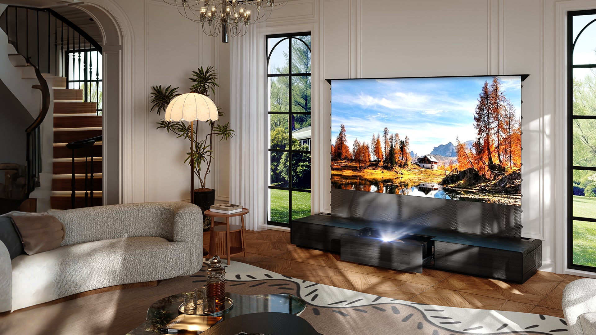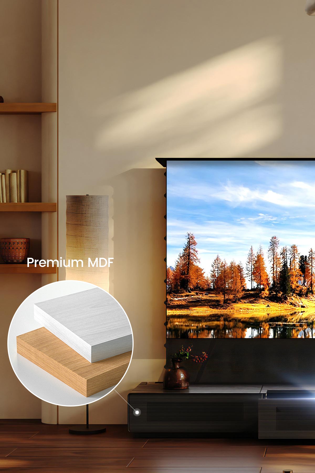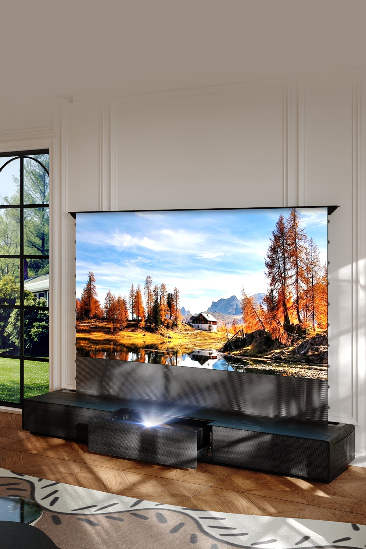 The Shore ROLATV Rollable Laser TV Cabinet is an intelligent all-in-one media unit designed specifically for ultra-short-throw laser projectors. Featuring a three-section cabinet structure, it combines modern aesthetics with high functionality. Its unique center-mounted electric drawer design, combined with high-quality solid wood and veneer materials, has excellent load-bearing capacity and brings a quiet experience. It is the ideal choice for users who value both appearance and functionality.