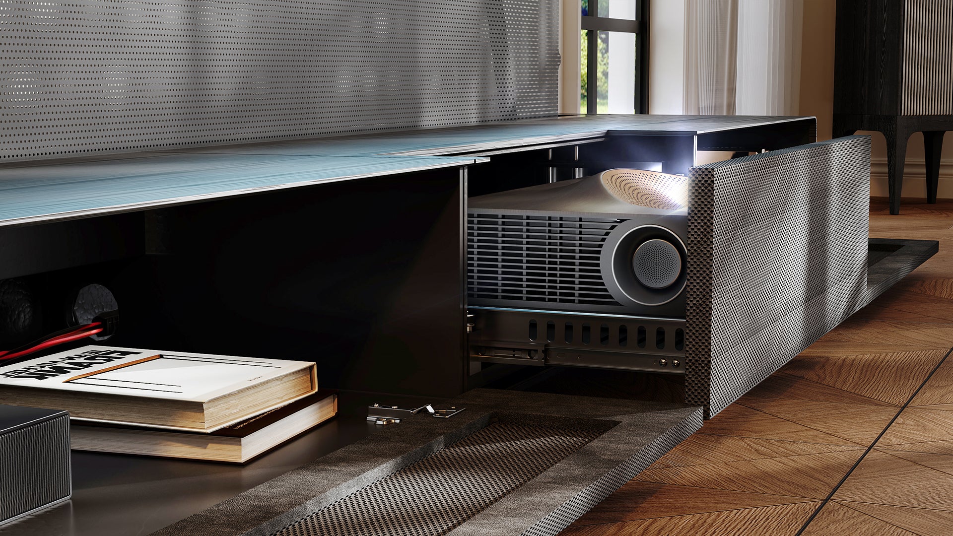(Note: The matte Laser TV Cabinet is out of stock in the US warehouse.)