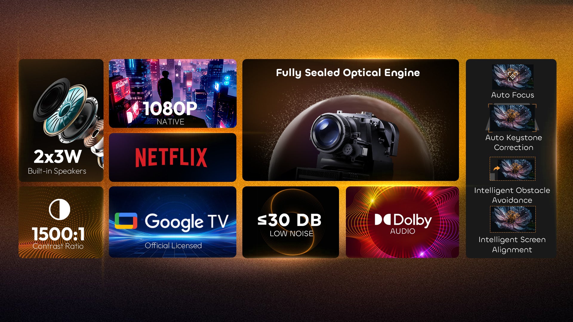 "This projector is unique for its Google TV and Native Netflix features, which make streaming easy and seamless without any additional devices."